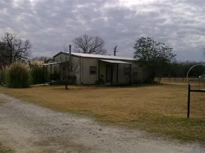 Designed for both comfort and entertaining, this 2/2/2cp steel home features an open style of floor plan between the living room and the kitchen. The focal point of the living room is the wood-burning stove. The floor is laid with Berber carpet except for the area where the stove sits, which is ceramic tile, and there is a ceiling fan. The kitchen has a large pantry with an abundance of storage. Its unique pendant light fixtures are made from galvanized buckets. The vent-a-hood, made of corresponding galvanized metal, covers an island area that has both a prep sink and a gas cook top. The bar, which is overlaid with tile, is chair high rather than stool high. The sides of both the island and bar are also of matching galvanized metal. There is a built-in oven, lots of counter space, and a built-in desk area. The floor in the kitchen is ceramic tile. Adjoining the kitchen is the dining room, which has a ceiling fan, and the floors are also ceramic tile. The large master bedroom has Berber carpet and a ceiling fan. Connected to this bedroom is the master bathroom. The high countertops have double sinks and decorative lighting. There is a tub/shower combo, a nice size linen closet, a roomy walk-in closet with storage shelves and double rods. The floors are easy-to-keep vinyl. The cozy guest bedroom has Berber carpet, a ceiling fan, and a small closet. The large second bathroom is located off the hall, which is ceramic tile, and has a pedestal sink, a tub/shower combination, a linen closet with hamper, and vinyl floors. The laundry room at the end of the hallway is adjacent to the bedrooms and has hanging rods and room for either an upright or chest freezer. The floors are vinyl. Completing the house is an attached covered back porch with decking. The outside is landscaped with St. Augustine and pampas grass, three flagpoles, a greenhouse/well house with water and electricity, an established garden, and a decorative water pond. Pipe and horse wire fencing enclose the house and yard, and the perimeter fencing is of barbed wire. The cattle working pens are made with pipe, and the barn has a tack and feed room that could be used as a workroom. Water and electricity are available at the barn.