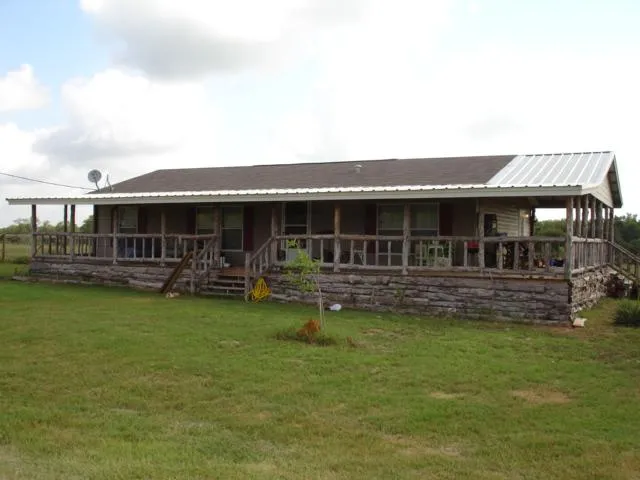 10.37 fenced acres of pasture and woods near Marquez with Mill Creek running through it. There is a nice 1344 sq. ft. 3 bedroom, 2 bath manufactured home on a high hill with a comfortable wrap-around cedar porch. There is a barn for livestock on the property also. $99,500.
