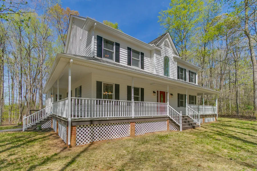 Welcome to 2171 Hunters Mill Road! This gorgeously renovated home in Powhatan county is just 15 minutes from Westchester Commons and Interstate 288. It sits on a 10+ acre lot and offers maximum privacy. The first floor of the home features a spacious kitchen with hardwood floors, granite counter tops, and stainless steel appliances as well as a breakfast nook with bay window and built-in cabinets. The living room also has hardwood floors, as well as a brick wood burning fireplace and vaulted ceiling! Also located on the first floor is the master bedroom which features a large walk in closet, new carpet, a ceiling fan, and gorgeous private bath. All other bedrooms are on the second floor and include double closets and new carpet. The second floor also includes another full bath. The large rear deck and yard make for a great place to entertain family, friends, and guests. New gutters have been installed on the home. The property also includes a detached 1.5 car garage. Thank you for visiting, we hope you call it HOME!