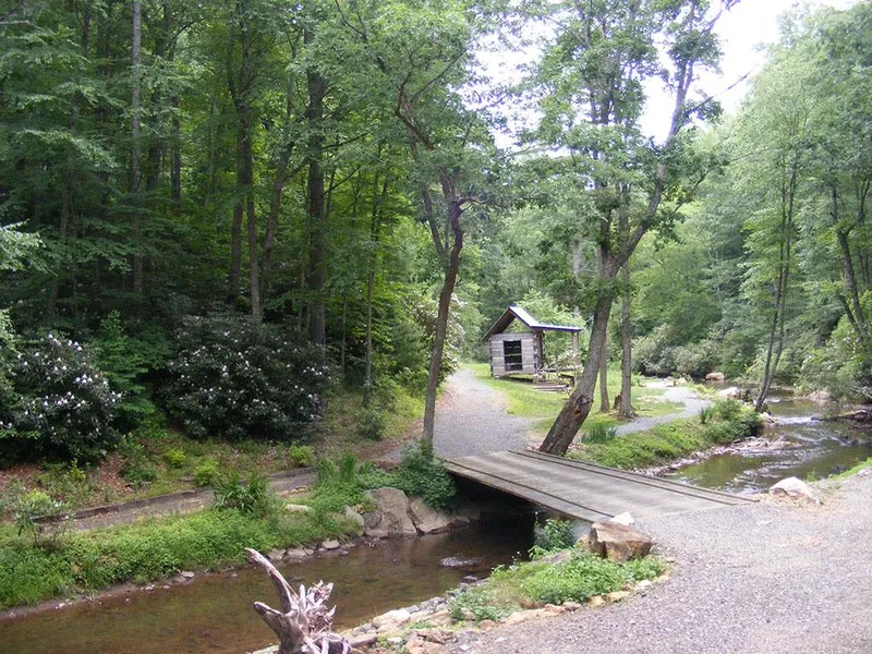 Rhododendrons, mountain laurel and wildflowers are prolific. Most of the property is hardwood forest. There is long frontage on both sides of Crooked Creek, a bold native trout stream. The temperature is comfortable year-round and is approximately ten degrees cooler than surrounding areas during the summer months, making it the perfect place for fishing, hunting, riding, gardening or relaxing in privacy.