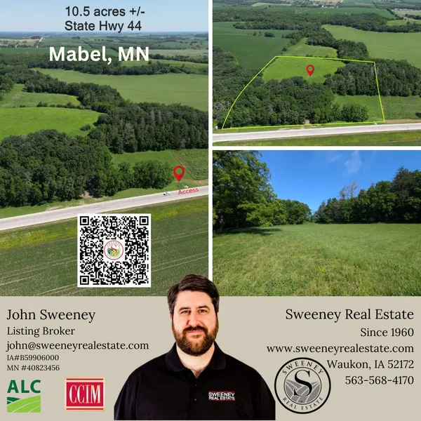 Discover this stunning and diverse parcel of land offering endless opportunities whether you're looking to hunt, graze, cultivate, or build your dream home. Ideally situated on the north side of State Highway 44, with a gently sloping grade embracing the southern exposure. This site is just minutes from Mabel, MN, and within a convenient drive to both Rochester, MN, and La Crosse, WI.