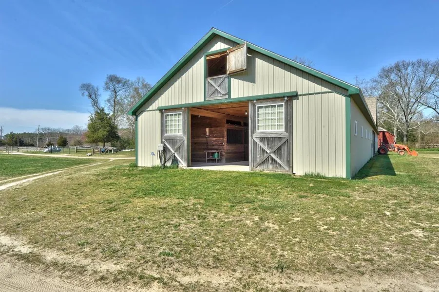 - Out buildings and barns for large equipment storage, workshop, and additional horse stalls - plus oversized four car garage