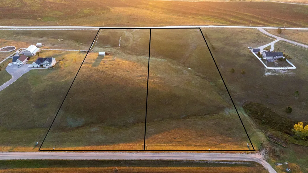 Discover a unique opportunity just 5 miles from Hays ~ two adjoining tracts offering both functionality and future potential!! Both parcels are fenced as one, and being sold together as one package. The first almost 5~acre lot is buildable and ready for your dream home. It is already connected to rural water, has a water meter, automated watering system and a lean~to barn. The second almost 6~acre lot ~ while not practical for a residence ~ provides excellent support for horses or other agricultural purposes. Together, these properties blend country living with convenience, giving you space to expand, raise animals or simply enjoy the Kansas landscape. There also is proposed paving for the entry road that includes paving the development making this rural property even more desirable. Monthly HOA fees are $200 per lot...