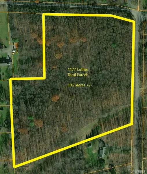 10+ acre l ightly wooded and just minutes to the village of East Aurora. Private and serene with frontage on both Luther and Snyder Rd. General frontage marked with reflectors at road. Gas line Easement runs through portion of property
