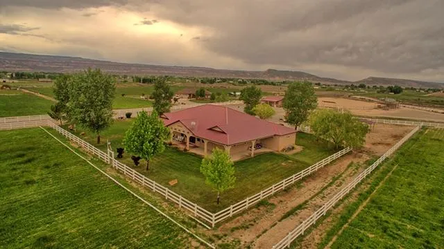 Fantastic views of the Grand Valley from this well appointed stucco rancher on 10 irrigated acres. Great horse property with fenced pastures, corrals, and arena. Enjoy afternoons and evenings on the shaded veranda that wraps around the house. Large living space and open concept floor plan. Central air & forced air heat plus woodstove in the living room.