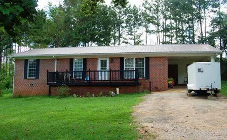 Perfect for first time home buyers!! RENOVATED-EVERYTHING IS NEW!! Sitting on 10.8 acres, this 1,269 square foot brick, ranch style home has 3 bedrooms and 2 spacious bathrooms. Rooms include a family room, formal dining room ideal for family dinners, laundry room, a kitchen with solid surface counters, nice-sized island, eating area, refrigerator, oven, and built-in dishwasher included. There is a front porch with a sitting area and a back patio for grilling and entertaining. This home has Central Heating/Air, electric appliances, well water, carport, and storage building. Located in Randolph County near Hollis Crossroads.