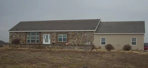 Newer home with full, partially finished basement. 50x30 metal building with concrete floor & lean to on each side for cattle/machinery shelter. Large master bedroom & bath with shower & tub. Large open kitchen with dinning area. Must see fireplace, which will heat main floor living area with help from 5 ceiling fans. Home has been well kept with basement needing finished. One bedroom & bath finished, with a 2nd & possibly a 3rd bedroom needing sheetrocked & finished. Large area for rec room. Nice entry gate ornaments do not stay along with rocks. Shop is large enough for on the farm repairs or business opportunities. Attached garage is unfinished (needs doors) & is extra large with entrance to both kitchen or basement.
