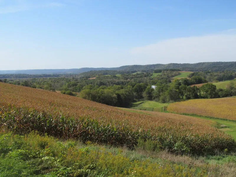 100 acres located between the Trempealeau River bottoms and the big bluffs of Buffalo Co. There is approx. 55 acres tillable for income. This farm is a key travel route for deer traveling from the bottoms to the big hills. There are trout in the stream. If you are looking for a nice quiet and scenic place to build you couldn't do any better than this place. There is a timber framed barn in good shape and several other buildings as well. The house needs to come down. There is a windmill but the well has been capped. There is no well or septic for the house.