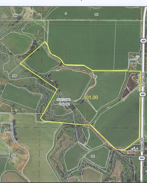 Irrigated farm with +/-100 acres, 73 irrigated acres and +/- 27 non irrigated acres. Bring your machinery and dreams to this irrigated farm. It consists of 5 flood irrigated partials easily flooded with gated pipe. The irrigation water is provided by the Kinsey Irrigation District. The partial that is being sold is connected to another property and will be surveyed to determine exact acreage prior to closing. Agreement to possess the farm prior to closing could be negotiated in order for buyer to plant crops for the 2021 season. Irrigation pipe is not included but could be purchased from seller separate from the land. farm also has a 150 head feed lot. Owner is keeping 40 acres property is to be surveyed prior to closing.