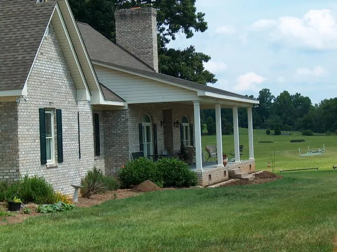 There is a separate entrance to the main residence. Built in 2001 this three bedroom/2 bath full brick home has spectacular views of the property from most rooms, as well as, the rocking chair front porch and deck. At the end of the day friends and family often gather on the front porch and enjoy each other’s company while watching the wildlife roam the cross country fields. The tiled sun porch has two sets of French doors and opens onto the side deck and kitchen area. The hardwood and tile floors, corian and cherry counter tops, oversize rock fireplace and cathedral ceilings are just a few of the features of this beautiful home. Be perfectly comfortable living in this warm and inviting home or build your dream home up on the hill overlooking your own private paradise.