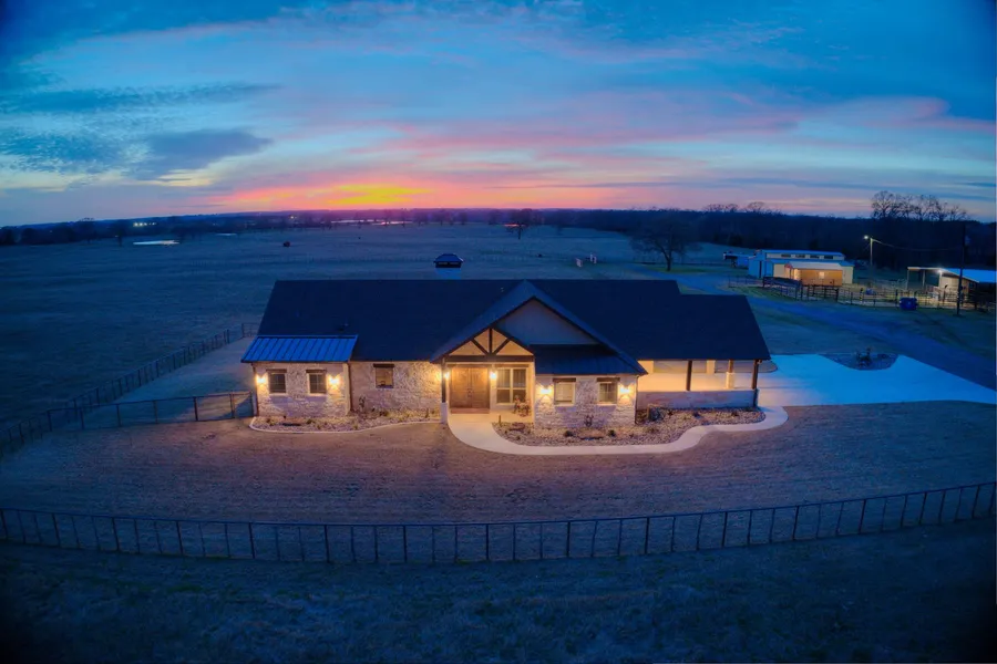 Almand Land & Cattle is 100 recently developed acres in Henderson County with a 2,145 Square-Foot newly constructed Stone Home, Barn, Tack room, Shop, Office & Working Pens under cover. This Henderson County property is located 6 miles south of Athens off Hwy 175 on County Road 4510. This property has been recently developed and improved to the highest of standards with all new fencing and cross-fencing. Ample water from 4 tanks and large mature trees accent the rolling topography making this gorgeous fenced and cross-fenced property ideal for cattle and horses. (All fencing is new and consists of 6-strand barbwire with cedar stays and pipe in several areas around working pens and residence.) The highlight of the property is a newly constructed and fully-landscaped 3 bedroom, 3 bath home with 2 vehicle carport and boasts every amenity imaginable. This open concept home features an impressive floor to ceiling stone fireplace, vaulted tongue and groove ceilings, gabled roof lines, wood tile throughout, custom lighting, plantation shutters, custom cabinetry, granite counters, black stainless steel appliances, bottle king beverage station, laundry & mud room with sink and built ins, surround sound, security system, in ground sprinkler system, outdoor grill, safe room, gorgeous master suite with dual shower and vanity with free-standing soaker tub, wall mounted faucets and large walk-in closets with built ins.