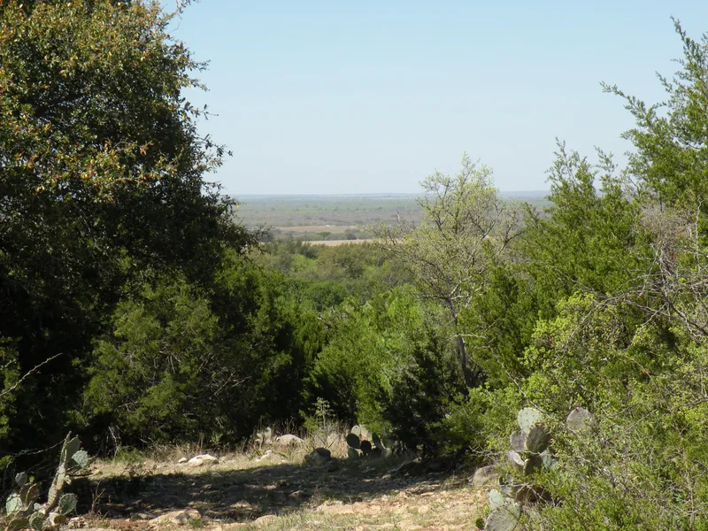 Terrain. This is rough and rugged terrain with elevations and distance views. The property is secluded, it does not join any public roadway except for the access road. It is heavily wooded with live oak, elm, mesquite, cedar and prickly pear.