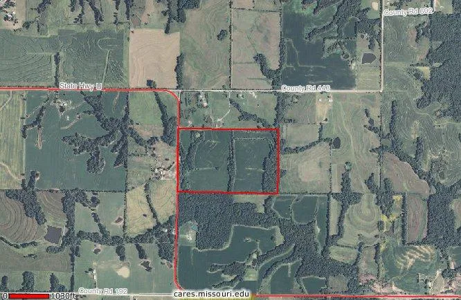 100 acres located near Stoutsville in Monroe Co. 64 acres tillable with 7000 bushel bin. Water and electric on site. Asking $4500/acre.