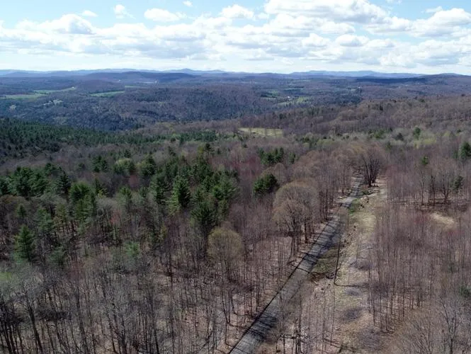The property is situated in the northeast section of Brookfield Township, in an area predominately forested and generally at the town's region of highest elevation. This location gives way to long views to the west from certain locations near and on the land.