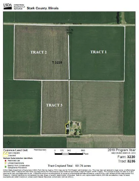 Sale by public auction on December 10, 2019 at Stark county Courthouse (130 W Main St. Toulon, IL) at 9 am. 100 acres of prime Stark County Farm Land to be auctioned in three tracts. Tract 1: 40 acres; Tract 2: 40 acres; Tract 3: 20 acres.