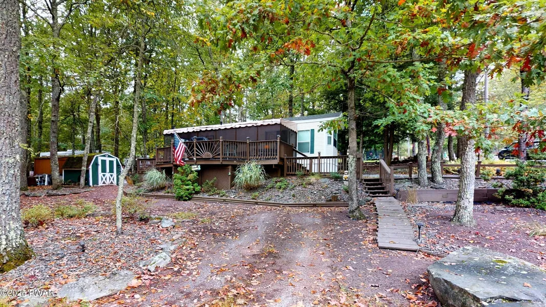 BEAUTIFUL 2002 CHARIOT EAGLE PARK MODEL. IN MINT CONDITION ON GORGEOUS, LARGE CORNER LOT. COMMUNITY DUES INCLUDE WATER & ELECTRIC, & ACCESS TO ALL AMMENITIES INCLUDING LAKE ACCESS. ALL INTERIOR & EXTERIOR FURNITURE INCLUDED IN SALE Featuring newly installed septic and flooring throughout, a new electric fireplace, 50 AMP electric service, sliding glass doors leading to a new screened-in front porch with canopy and bump out deck for grilling; an open kitchen, living, & dining area w/ propane or electric cooking & plenty of cabinet storage, vinyl accordion doors in the living room can convert living room into another bedroom w/ its new pullout couch/bed, beautiful outdoor landscaping and lighting, 2 separate driveways/parking areas affording ample parking for multiple cars. shed storage, gravel round perimeter of property with wooden walkways. Large Flatscreen television and generator on the premises do not convey.