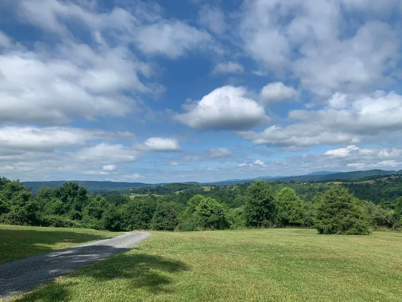 Driveway is approximately 3/10 mile and has stone and gravel. Base is 4-6 inches creek rock, driveway ~12-15 ft wide. Designed strategically to easily access various parts of the farm.
