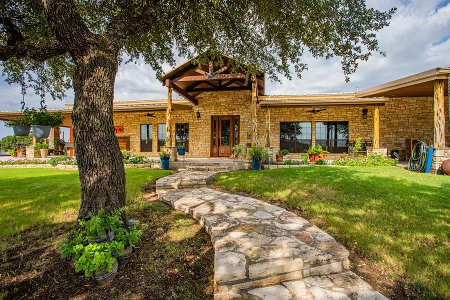 IMPROVEMENTS: Dog Tick Ranch's main Texas Hill Country style home has all the amenities of the city. This 4000+sqft home features 3 bedrooms, 2 full baths, 2 half baths, a loft for extra kids, huge pantry/laundry room and handsome office area with built-in shelves. The Chef's kitchen with its massive granite top island is essential for entertaining friends and family. Large side-by-side refrigerator/freezer, Wolf gas stovetop/ovens, extra oven, built-in microwave, chef's pot filler, the list goes on in this great kitchen. Open to the kitchen is a larger-than-life Great Room with rock wood-burning fireplace. Just next to the main home is a quaint 1 bedroom, 1/2 bath bunkhouse for extra guests.