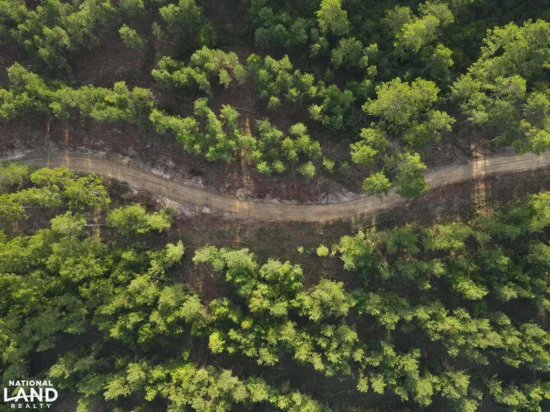 This tract offers blacktop road frontage, a comfortable access road across gentle topography, varying timber types, transmission frontage and the majority of its acreage outside of flood plain.