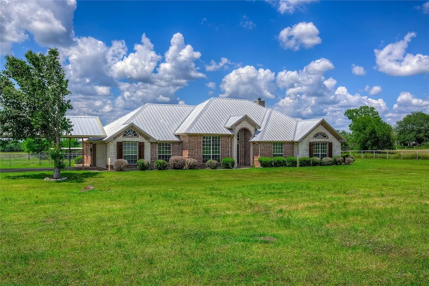 Welcome to your dream Equestrian Retreat! This beautifully maintained horse ranch offers everything the discerning equine enthusiast or professional needs. Situated on expansive, fully fence and cross fenced 12 acres, the property boasts: 8 Stall barn with spacious tack and feed room, electric and water to barn, a horse walker, corrals and running path with turnout areas, perfect for rotation and care. Separate pastures with run-in shelters. Charming ranch style home with a metal roof, two car garage along with a newly built 2 Car Metal Roof carport. Large kitchen with solid wood cabinetry, 2 dining areas, large living room with an Austin Stone fireplace, split bedrooms and Master with huge ensuite bath and an amazing wrap around master closet. Two tranquil ponds ideal for fishing and livestock. Dog kennels and an outdoor gazebo style patio. Rare opportunity for a fully equipped equestrian ranch. Keep the cows in the back, horses in the front and fully utilize AG Exemption.