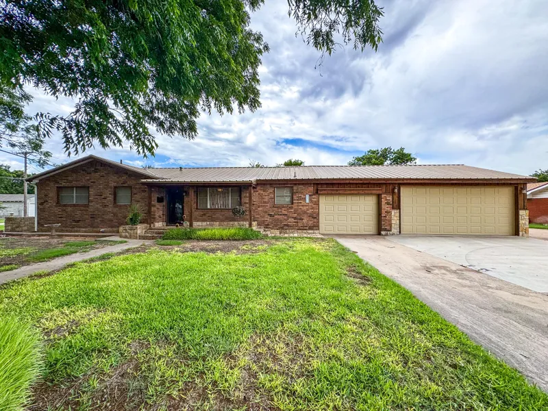 This well-maintained ranch-style home offers a perfect blend of comfort, character, and functionality. Situated on a spacious corner lot, the property boasts abundant parking, including an optional five-car garageideal for car enthusiasts or those needing extra storage. A durable metal roof tops the home, while the inviting front dining room welcomes you upon entry. The heart of the home is the stunning living room, featuring vaulted ceilings with exposed beams and a beautiful fireplace that creates a warm, inviting atmosphere. The kitchen offers ample storage and a high bar area, perfect for casual dining or entertaining guests. Additional features include a dedicated office, a convenient mud room off the garage, and flexible living space. The home is currently configured as a three-bedroom, though the back bedroom could easily be converted back into an enclosed patio if desired. With two full bathrooms and one half bath, the layout is both practical and comfortable. Outside, enjoy a back open patio, two storage buildings, a water well, sprinkler system, fenced yard, and moreall adding to the home's appeal and versatility.