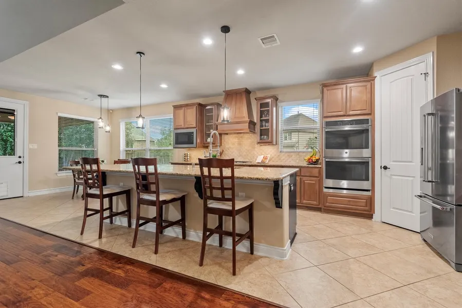 Located in the gated section, Legends at Gleannloch, this stunning home sits on a spacious corner lot in a quiet cul-de-sac. Interior highlights include wood floors, stone fireplace, private study, and a chef’s kitchen with granite countertops, double ovens, and stainless steel appliances. A second full bedroom and bathroom downstairs offers flexibility for guests or multigenerational living. Upstairs features a large game room, media room, and a balcony off a secondary bedroom. Outdoor living includes a sparkling pool/spa (2022), extended decking, and oversized covered patio -perfect for entertaining. Recent updates: new roof (2024), carpet (2025), full sprinkler system, window tinting, and more. Enjoy a 3-car garage with epoxy floors, storage shed, and a generous side yard. Zoned to top-rated Klein ISD and nestled in a resort-style community offering lakes, trails, pools, golf, equestrian center, dog park, playgrounds, sports fields, and more. Easy access to Hwy 249 & Grand Parkway!