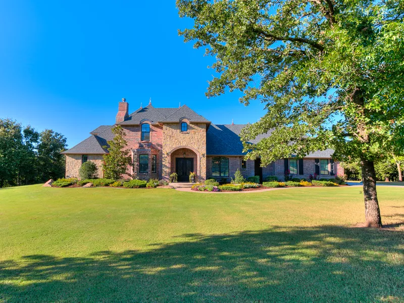 This elegant residence situated on 2.5 acres of meticulously maintained grounds offers an exceptional layout enhanced by sophisticated craftsmanship. The impressive grand foyer opens to a formal dining room ideal for all your holiday gatherings. Two gracious islands, double ovens, copper sinks, gas cooktop, additional prep sink, and a casual breakfast nook finish the classically designed kitchen. The living room features a coffered ceiling and custom built-ins along with one of the incredible fireplaces. Escape to the generous first floor master suite with cozy sitting area, fireplace, double vanities, and custom his and hers closets. A study, guest suite, large laundry room, and mudroom complete the first floor. Upstairs you are met with 2 ensuites with custom closets and a bonus living area that includes a balcony overlooking the expansive private backyard. Other notable features include an outdoor kitchen, storm shelter, and three car garage. Schedule your private tour today!