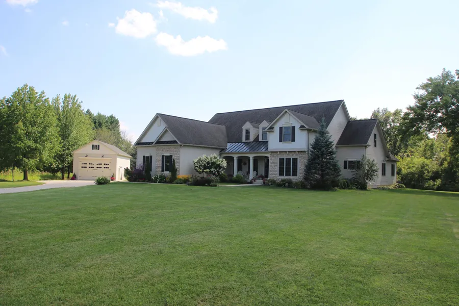 Gorgeous home nestled on 4 acres offers the best of country living yet is located close to everything for easy daily living! Over 4,800 sq ft of finished living space w/ potential to add more in bonus rm above garage & full basement w/ 9' ceilings. Home is built for entertaining w/ huge open floor plan centered around a central two story great rm w/ stone fireplace & built-in entertainment center, spacious eat-in kitchen w/ huge island, breakfast bar, Granite, work desk, & large dining space. FF owners suite has door to screen porch. His/Her vanities, walk-in closets, whirlpool tub, & 5' walk-in shower. Enjoy the outdoor fireplace from the cedar screen porch, deck, or patio! 24'x 44' detached garage perfect for boat/RV w/ 18'x12' tall door. 1st floor is designed to be ADA compliant. Fireplace is a wood burning insert with blower. It could be converted to gas log by next owner. Basement designed and built for a mother in-law or guest living quarters. Rough-in plumbing in basement for a full bath and kitchen. Ingress/Egress windows in basement for another bedroom. Refrigerator in home kitchen and pantry convey. The refrigerator in the detached garage does not convey. Conventional stick-built detached garage designed for boat/RV storage with an 18' x 12' tall overhead door. Bonus Room above home garage has insulation, heat ducts, and electric wiring so it can be finished adding an additional 500+ sq ft to home. 5th bedroom upstairs does not have a closet as owner did not want it, but could be added. 2x6 construction w/ extra insulation.