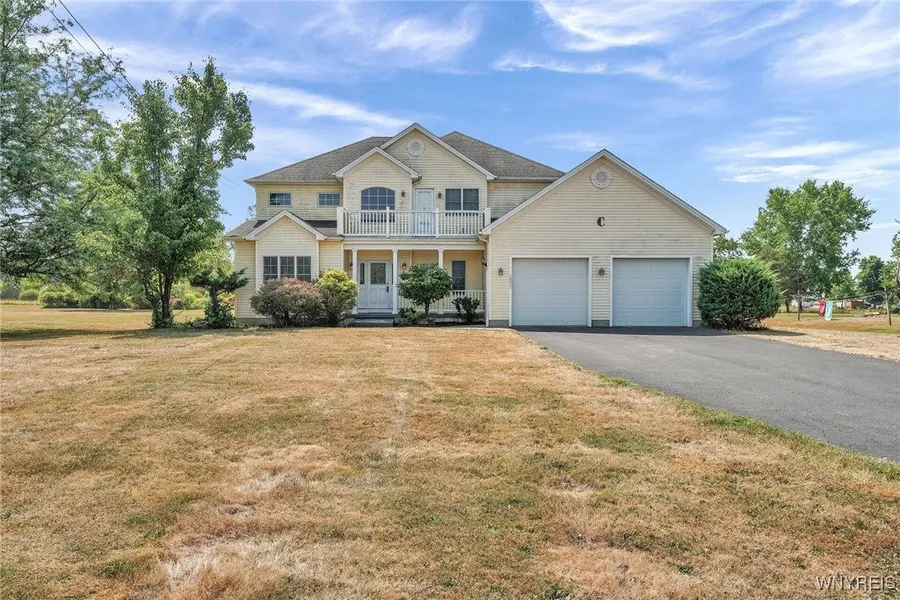 Welcome to 10025 Clarence Center Road. This two-story Colonial features 4 bedrooms, including one on the first floor, and 3 full bathrooms. In the past two years, significant updates have transformed this home. The kitchen now boasts new granite countertops and stainless steel appliances, including a cooktop, stove, sink, dishwasher, and microwave. The primary bath has been fully renovated with a double-sink vanity and a walk-in shower. Most floors on the first floor, as well as the second-floor bedrooms, have been upgraded with premium vinyl plank flooring. Custom-built bookshelves add character to many rooms. The sizable two-story family room features a gas fireplace surrounded by a wall of windows, allowing for an abundance of natural light, and custom bookshelves. A newer sliding glass door leads to a beautiful, brand new 32x15 composite deck overlooking the rear yard. The basement includes a massive 34x14 storage area with custom shelving. This home sits on a huge 2.8-acre wooded lot. Relax on the front covered 18x5 porch or enjoy coffee on the second-story 18x5 balcony. Enjoy the convenience of the Clarence Soccer Center right across the street and the nearby Clarence bike path. Some photos have been virtually staged. The seller reserves the right to set an offer deadline date.