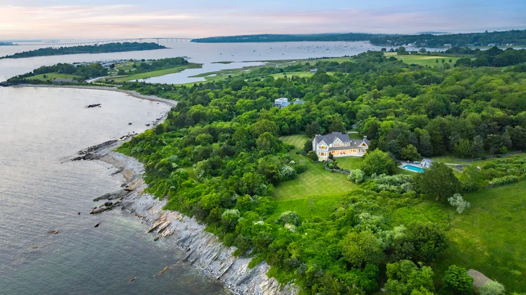 Introducing South Winds, a coastal landmark estate custom-designed and privately held by one family now offered for the first time in its history. Set on 14.4 acres of pastoral waterfront, this serene sanctuary offers a kaleidoscope of seasonal color where land meets sea. A peaceful retreat just a short walk to town, this architectural gem captures the essence of coastal New England living. With sweeping ocean vistas and the murmur of waves as your soundtrack, the home offers en-suite comfort in all four bedrooms. The primary suite features a private balcony with views to Rhode Island Sound and West Passage. Architectural millwork and built-ins enrich the thoughtful design. Entertain on the expansive covered deck, while taking in sunset views, just steps from the beach. Launch your paddleboard, swim, or fish from the shoreline, meander through cedar trees where you are amongst conservation land, wildlife and calming meadows. Unwind by the pool and cabana, or cultivate your garden within the artisan stone-walls and gate. Additional structures include a barn and versatile outbuildings ideal for a studio, workshop, or creative space. With town water and family compound potential, South Winds is a rare blend of tranquility and accessibility a coastal haven for family and friends to gather comfortably, and where memories are made.