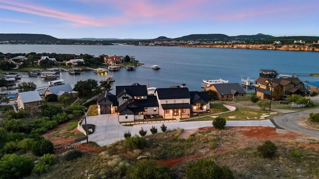 Situated in a calm cove of the highly sought-after Gaines Bend community, this iconic home offers the perfect blend of privacy and lakefront living. With immediate access to the main channel of Possum Kingdom Lake, you’ll enjoy seamless days on the water from your private dock with 12ft of water and oversized boat garage. The spacious open-concept design includes 5 bedrooms, each with its own private en suite, creating a comfortable retreat for family and guests. A home office, second living space, wine room, dry bar, butlers pantry and more are just a few extras in this custom new build home! Designed for entertaining, the home offers a pool and hot overlooking PK, a fully equipped outdoor living center, and expansive spaces that flow effortlessly from indoors to out. Whether relaxing by the water, hosting friends around the pool, or setting off for a day on the lake, this property captures the best of Possum Kingdom living.