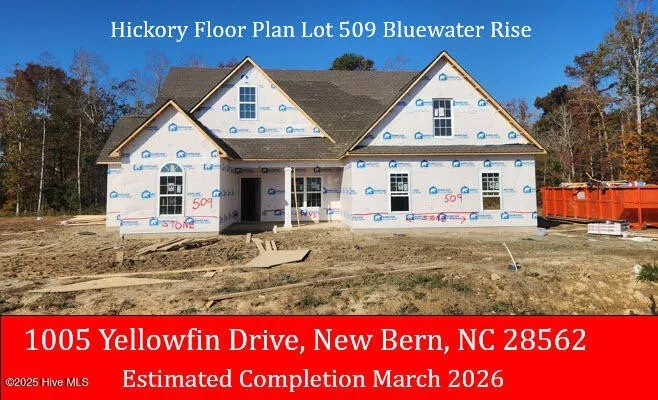 The ''Hickory'' floor plan in Bluewater Rise. Builder offering $10,000 buyer's closing incentive w/ use of preferred closing attorney. Features 3 Bedrooms / 3 Baths w/ most of your square footage on the 1st floor. An additional bonus room upstairs with it's own full bath and closet can be a 4th bedroom. Great Room with vaulted ceiling and gas fireplace. Master Bedroom has tray ceiling. Other features include an eat in kitchen w/ granite counter tops plus a formal dining room, covered back porch.
