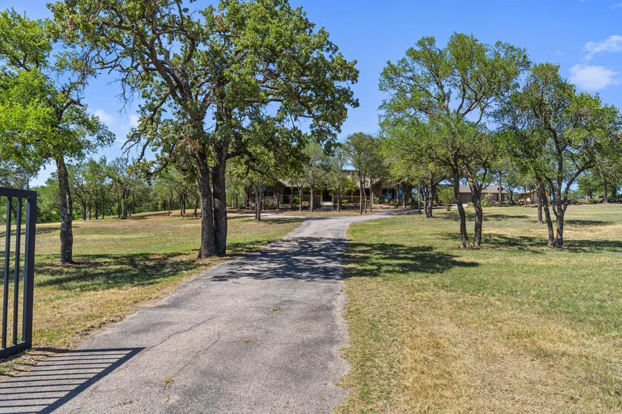 Exquisite Gentlemans Ranch at the heart of the hill country. Stunning executive home on 77+ acres, located in the desirable semi-rural Highway 281 corridor in Burnet County. Perfect family or multi-generational home. This spacious & dramatic residence is 5000+ sq.ft. with 2 master suites, 2 additional guest beds, 6 baths, top notch kitchen with adjoining butlers pantry, media or Entertainment room, flex space, office/study, & a 3 car garage/workshop, and covered front and back porches. Architectural details include a grand foyer, imported stone flooring throughout, admirable fireplace, and a full wet bar. The above ground pool is perfect for the hot Texas days. Situated just north of Marble Falls, this home offers privacy, a gated entrance, and a wet weather creek perfect for family adventures. With over 1000ft of FM 1855 road frontage, this property allows for plenty of opportunities and uses.