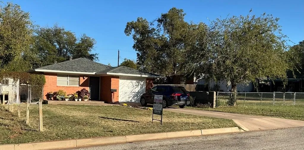 Charming 2 bedroom, 1 bath home. Bonus room could be a 3rd bedroom, office or 2nd living area. Kitchen has been recently updated with butcher block counters. Most of the interior has new paint. Bathroom has a new vanity and counter top. Flooring is newer luxury vinyl tile planks. Appliances include smooth top stove/oven, refrigerator, washer and dryer! Large, fenced backyard with 1 car garage/workshop (approx. 471 sq ft) with alley entrance. Roof was installed in 2021. Located in quiet established neighborhood. Being Sold AS IS! Square Footage per CAD, Buyer to verify all square footage. For more info and to schedule a showing call Pam Reynolds 325-829-5192