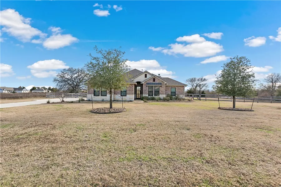 Nestled in the heart of Iola, this residence in desirable Kings Oaks boasts an array of luxurious features. Built in 2021, this single-family home sprawls across a single level, offering a spacious and open layout. Complete with 3 bedrooms, a flex space for a study or 4th bedroom and 2.5 bathrooms, step inside to be greeted by an expansive open floor plan. The gourmet kitchen showcases a large island, custom range hood, and quartz countertops, providing ample space for culinary creations. Adjacent to the kitchen, the grand living room features vaulted ceilings with exposed beams, creating a sense of grandeur and airiness. A cozy fireplace invites you to relax and unwind on chilly evenings. The primary suite boasts a tray ceiling and a walk-in closet, offering a serene retreat. The en suite bathroom pampers with a double vanity and a tiled walk-in shower, providing a spa-like experience. Two additional bedrooms share a well-appointed full bathroom, ensuring privacy and comfort for guests or family. Outside, the fenced backyard offers a private oasis, perfect for entertaining or simply enjoying the outdoors. A covered patio provides shade and a serene ambiance, while the water view adds a tranquil touch. Not to mention King Oak's many amenities: miles of walking trails, 60-acre nature preserve, stocking fishing ponds, community swimming pool, and more! This exceptional home combines luxury, style, and functionality, creating an unforgettable living experience.