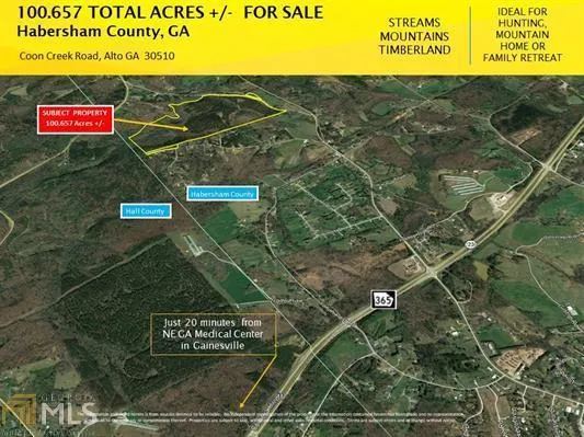 Research Parcel InformationFrom South: Take I-985 / GA 365 North, into Habersham County. Crane Mill Road is second road as you enter Habersham. Take left onto Crane Mill Road, then left onto Coon Creek Road. Property is on the left. Approx 15 minutes from Gainesville