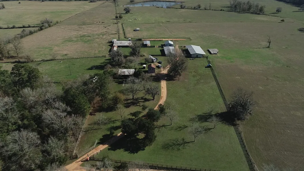 101 acres with 5 Acre stocked lake and rolling hills with home, horse barn , cattle barns , cattle working pens. equipment sheds and roping pen and Property sets high on the hill elevated and over looking the East Fork of the San Jacinto River. This is a one of a kind property great cattle ranch and a wonderful place to call home The home and barns are accessed from Denson Allen Rd but also has access from HWY 150. Located in Coldspring -Oakhurst Consolidated school district.