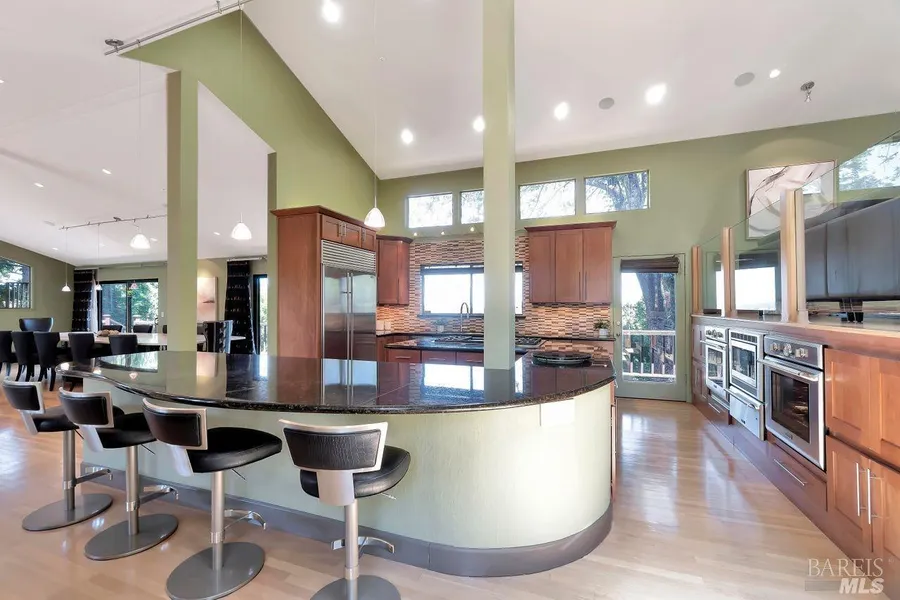 This stunning 5 bedroom, 3.5 bath 4,244 sq ft. residence is nestled at the top of a cul-de-sac surrounded by privacy. Prepare to be captivated by the breathtaking views of the Bay and the majestic Sonoma Mountains that greet you from every angle. This home offers a lifestyle of unparalleled beauty and tranquility. Step inside and be immediately drawn to the open contemporary floor plan that effortlessly combines style and functionality. The approximately 4,000 sq. ft. wrap-around Trek decking, accessible through sliding doors, extends the living space and provides a seamless indoor-outdoor flow. The renovated chef's kitchen is complete with Thermador Professional SS gas appliances, Sub Zero Fridge, and custom cabinets. Adorned with granite counters and featuring a large picture window framing enchanting eastern views. The practical center island offers ample workspace and doubles as a social hub for casual conversations or setting up a buffet line. Additional home features include a Finlandia Sauna, Smart LED lighting, Ceiling speakers, a Bar area, Tankless water heater, Dual Furnace and A/C Units, 3 car garage, built in outdoor kitchen and BBQ, Hunter Douglass Shades & Double walk-in closets in the Primary Bedroom. At $422/sq ft this home is one of the best deals in Marin!