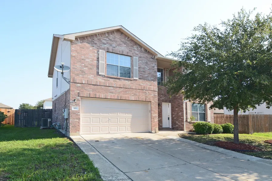Spacious 4 bedroom, 2.5 bath 2,336+/- sf (BCAD) home located in Hunters Crossing. Mature trees in the front aid in privacy & provide great shade! Step inside to an open floor plan with a large living room and kitchen area. Upstairs are 4 large bedrooms, all with walk in closets! The master suite provides double walk in closets, double vanity and a large bedroom! The large back yard is complete w/ a custom tile patio area! This home is move in ready with fresh paint, new carpet, custom tile work and more!