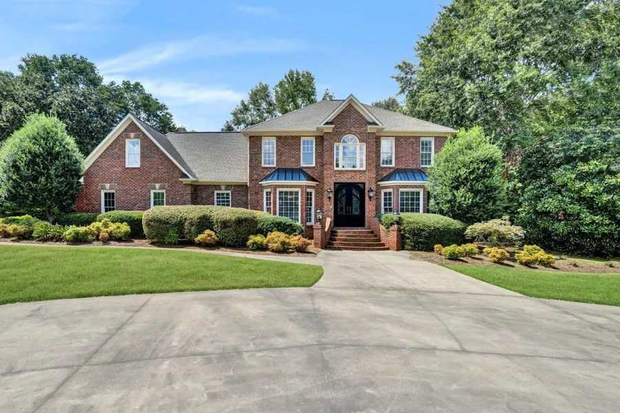 Welcome to this quality-built custom brick home, thoughtfully designed for comfort, beauty, and ease of living. Nestled within the prestigious Carolina Country Club—complete with 24/7 gated and guarded security—this home sits proudly on a level 0.85-acre corner lot, offering both privacy and curb appeal. Step through the recently replaced gorgeous double front doors into the impressive two-story foyer, where gleaming hardwood floors flow seamlessly throughout the main level, setting the tone for the elegance and warmth found throughout. The newly renovated kitchen is a showstopper, featuring marble countertops, a stunning backsplash, Café stainless steel appliances (including a double oven and gas cooktop), a Sub-Zero built-in refrigerator, and an abundance of custom southern white cabinetry. Whether you’re enjoying your morning coffee in the breakfast area or preparing a holiday feast for loved ones, this kitchen is as functional as it is beautiful. Entertain with ease in the spacious dining room, the perfect place for family gatherings and cherished heirlooms. Afterward, unwind in the massive great room, where soaring ceilings, abundant natural light, and a cozy gas fireplace create a welcoming retreat. French doors open to the private backyard, providing a seamless indoor-outdoor flow for gatherings or quiet relaxation. A recently updated powder room adds style and convenience for guests. Across the home, on the main floor, the luxurious primary suite offers a peaceful retreat and an oversized walk-in closet with built-in shelving. Double doors open to a spa-like bathroom that was just remodeled featuring dual vanities, a jetted tub, and a separate tiled shower. Work from home? This is the perfect office with built-in shelving and overlooks the front landscape. Head upstairs to three additional bedrooms that provide comfort and flexibility for family or guests, along with two well-appointed bathrooms to serve the space. Down the hall, a versatile family room is perfect for movie night and features a wet bar with a mini-fridge for beverages and snacks- this room can be accessed by the back staircase off the kitchen too! Lastly, an exercise room which could be a playroom, sewing room or home office ensures there’s room for every need. Step outside to enjoy your own private oasis. The large backyard offers endless possibilities—gardening, play, or simply relaxing on the deck with a glass of wine. The corner lot provides extra space and privacy, while the manicured landscaping enhances the home’s timeless beauty. Additional highlights include a three-car garage, ample storage, and membership opportunities at Carolina Country Club, where you can enjoy golf, tennis, swimming, and fine dining just minutes from your doorstep. This home truly blends custom quality, modern updates, and everyday comfort in one of the area’s most sought-after communities.