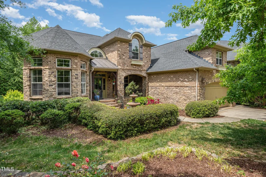 Former model home with a first floor master in the midst of a parklike setting (backs open space) in Cary with brick & stone accents. Step inside the two story foyer with wrought iron staircase & on your left is a formal living room tucked in the multi windowed turret. Elegant, spacious first floor master with double trey ceiling, sitting area & an ensuite bathroom has a walkin tiled shower, double vanities, large tub, tile floor, & walkin closet. Formal dining room with trey ceiling leads into the wooden beamed cozy family room with builtins, gas fireplace,& large picture window. Step into the expansive gourmet kitchen with 6 burner gas range, granite countertops, stainless appliances, upgraded cabinets, & an island with vegetable sink. Open & nestled next to the kitchen is the sunny breakfast nook with access to the extended deck with arbor. Stop there is more - open the glass paned door to the right & you have an office, craft room, playroom - you chose. Down the hallway is a computer room, half bath, & laundry room. Let's go upstairs - oversized bonus room that can accommodate a pool table with wood floor!! Two bedrooms with a jack and jill bath, another bedroom with its own bath & they all have new carpet. Media room with built in cabinets. Walkin attic for storage or finish able. Time to take an outside tour. Set up a bistro table for two next to the fountain or on the stone covered front porch. Want more privacy? Stroll with me to the back grounds with an oversized deck with arbor and trellis - the perfect place for afternoon tea or house warming party. There is still more on this .32 acres private, majestic, heavily tree lined back yard with stone accents, a fire pit, small pond, and room to entertain. Oversized garage with room for all your ''things''. The piece de la resistance walk to the pool & home is in a great location. Come see...