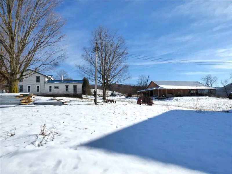 BEAUTIFUL VALLEY FARM. 101 acres includes 36 acres of ORGANIC CERTIFIABLE farmland & 44 acres of pasture. Soils have been carefully tended resulting in GREAT FERTILITY. Vine crops, cole crops, peppers, garlic, onions, tomatoes, corn, soybeans, oats, blueberries, strawberries, & raspberries grow well here! 2 gas wells (200,000 CF). No timber has been harvested in about 20 years. PRIME hunting land! Horse/cattle bank barn and milk house w/ water and electric, new machine shed, and storage silo. House has 5 bedrooms with 1 on the first floor. Very well insulated - blown in insulation. Spring water runs to house and barn (60 lbs pressure). Existing well and septic (not currently in use). Electric not currently hooked up, but house is wired and has breaker box that was installed 10 years ago.