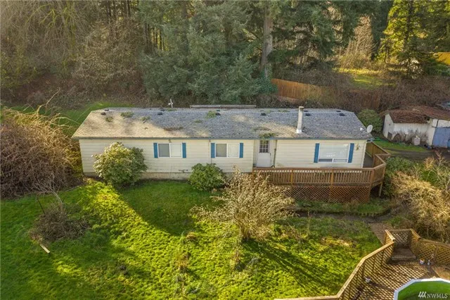 What an opportunity! Put on some gloves and get to work for some instant sweat equity! This 1.67 acre parcel is located just minutes from town yet offers a country setting with well and septic. Beautiful large maple and fir trees as well as fruit trees and even kiwis in this huge yard! The 1979 manufactured home is 1440 sq ft with an updated kitchen, 3 bedrooms and 2 bathrooms. Roof is approximately 12-13 years old. Surrounding deck on home and pool in need of some minor repairs to make it solid again. Partial view as well as detached 2 car garage! Property is an estate and no repairs will be made. Sold strictly as-is.