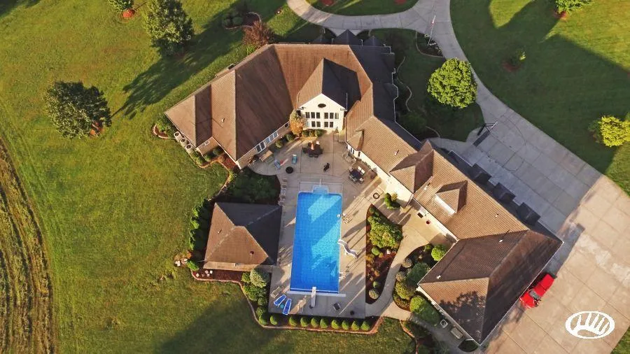 PRICE REDUCED! This immaculate country estate is beautiful from every angle. An elegant entry and concrete driveway ushers you to the sprawling home and attached garage that are beautifully landscaped. The all brick home with its steep roof pitch and multiple offsets and angles will please a distinguishing buyer looking for a top-end custom built home. The 7500 square foot home was built in 2001 and can comfortably house a very large family with a total of 5 bedrooms and 4-½ bathrooms. There are approximately 5,000 sq ft on the main level and in the bonus area with 3 of the bedrooms and 2-½ baths located here along with the open concept kitchen with central bar, a beautiful vaulted ceiling living room with a towering flagstone fireplace, columns, large windows to enjoy the 365 degree views, a perfectly situated office or den and 2 laundry rooms. The kitchen is loaded with top end appliances along with an extra refrigerator and freezer, granite countertops with tap-on under lighting and a range hood on the island and gorgeous ceramic tile floors. The attached 6 car garage is drywall-finished and has plenty of doors to park all of your vehicles and toys. Over the top of the garage is a finished bonus living area that has its own bedroom and full bath. In the finished basement downstairs you will find an additional 2500 sq feet of living space with another bedroom and full bath. Additionally, there is a convenient kitchen area in the basement with sinks and a bar for entertaining. The roomy layout allows for plenty of seating to watch a big-screen television for movie nights. Immediately out back is a welcoming inground swimming pool with diving board and slide. The pool is surrounded by a huge concrete pool deck with tons of space for sunbathing and entertaining guests with very tasteful landscaping giving an added sense of privacy. But the highlight of the pool area is the pool house! It has an awesome countertop bar area and a gas grill with a fridge and a half bath just inside. There is even an outdoor shower! The homesite is centered in 6 acres of impeccably maintained lawn with a relaxation inspiring 1-½ acre pond stocked with bass, bluegill, crappie, and catfish. The remaining open area in front is 12.6 acres of pasture ground ideal for raising hay or possibly grazing horses. Further back behind the home and the open ground is a stately stand of nearly 58 acres of hardwood timber home to a thriving deer herd and turkey population for your viewing or hunting endeavors. Beyond the big woods is 38-½ acre tillable farm field which is currently being cash rented to a farmer and provides income. This is truly the epitome of a classy country estate offering so much for a growing family. A definite must see to appreciate as there isn’t enough room to cover all of the fine details offered here. Shown by appointment only.