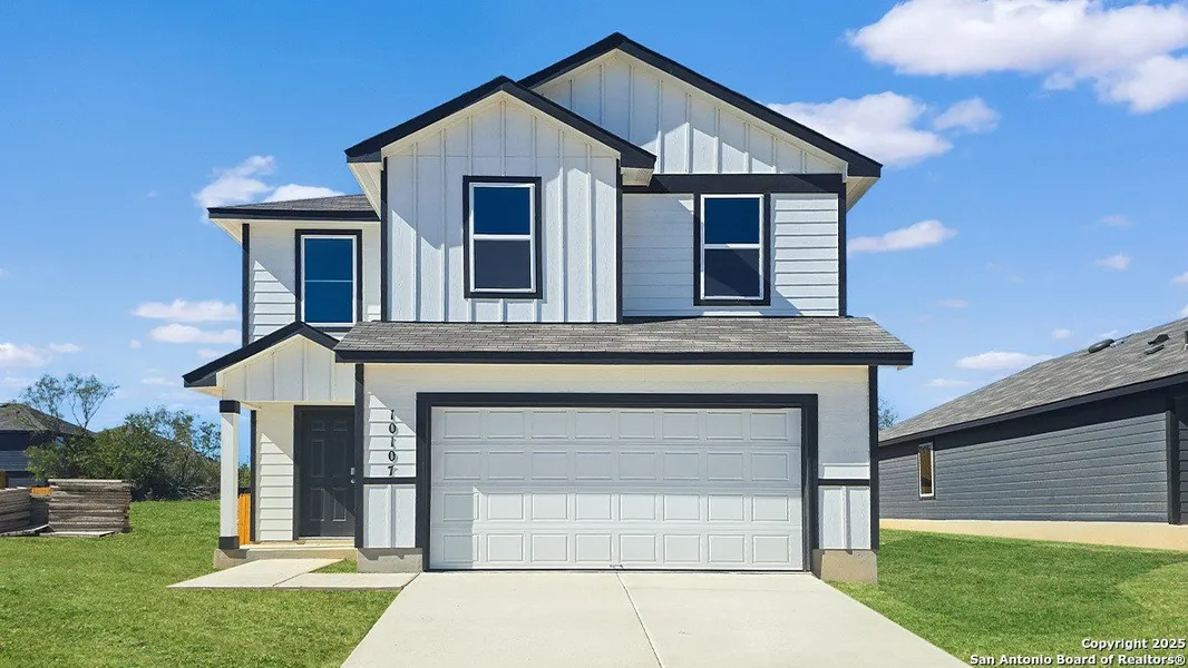 Welcome to The Davis, a two-story home located at Lucero in San Antonio, TX. This floor plan offers 2 classic exteriors and 2-car garage. Inside this 3 bedroom, 2.5 bathroom home, you'll find 1489 square feet of living space. The entry opens to a gourmet kitchen before flowing into the dining and family room with an open floorplan concept. The kitchen includes quartz counter tops, quality cabinetry, stainless steel appliances, large breakfast island, and pantry. Head up the stairs to find the main bedroom suite, all secondary bedrooms, the laundry room, and a full bath. The Davis layout is perfect if you love entertaining downstairs and relaxing upstairs. The private main bedroom features an attractive ensuite with quality cabinetry. A spacious tiled walk-in shower and large walk-in closet provide all the space and convenience you need. Additional features of The Davis floor plan include sheet vinyl flooring in entry, living room, and all wet areas, quartz counter tops in all bathrooms and HOME IS CONNECTED base package. Using one central hub that talks to all the devices in your home, you can control the lights, thermostat and locks, all from your cellular device.