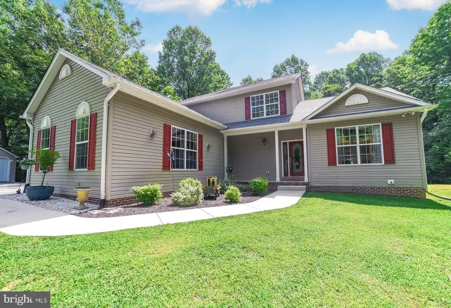 Charming Custom Built Colonial with over 4,000 square feet nestled on a nearly 5-acre private wooded lot! Featuring THREE TOTAL MASTER BEDROOMS (each with with their own attached bath), 4.5 TOTAL baths, 2-car side entry attached garage and a fully finished basement with a full bath. Gorgeous foyer/entryway with beautiful floors. Separate dining room with stunning wood laminate floors, crown molding and chair railing. Great/Family room off from the kitchen featuring a tray ceiling, ceiling fan, recessed lights, wood laminate floors, nice bright windows for lots of natural lighting and French-door leading to outside deck. GORGEOUS Kitchen features 42" cabinets, granite counter tops, back splash, built-in microwave, wall oven, island stove top, newer refrigerator, eat-in table space, bump out, walk-in pantry and a breakfast area with bay window. 1st FLOOR LEVEL MAIN MASTER BEDROOM suite with a bay window, bump out, a HUGE walk-in closet and an attached SUPER/MASTER BATH which features a separate soaking tub, separate shower and his & her vanities/double sinks. Main level powder room for convenience. Laundry room on main level with full cabinets and wash sink for all your laundry needs. Upper level features TWO MASTER BEDROOMS both with attached FULL BATHS and great closet space. FINISHED BASEMENT with walk-out features recessed lights, a recreation room, bar area, full bathroom, and a large bonus room that can optionally be used as office space, a 4th bedroom or exercise room. Over-sized attached side loading garage. Long paved driveway offers additional parking spaces. Large low maintenance backyard entertainment deck - great for BBQ'ing and entertaining family and friends. Large shed/detached garage with windows, access door plus a large garage style access door is great for storing lawn equipment, hunting equipment, bikes, tools, canoes, fishing equipment, gadgets and more! Nicely landscaped wooded lot surrounded by trees for great privacy and seclusion! Conveniently accessible to sought after schools, military sites, shopping, restaurants plus more! This charming home with lots of updates and great space inside and out - is a MUST SEE!