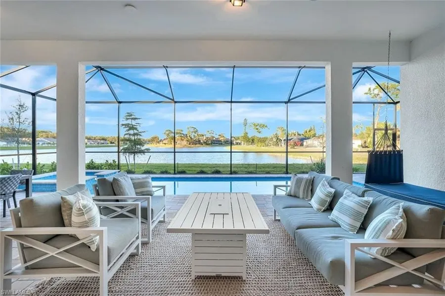 Exceptional value meets impeccable design in this standout Southwest Florida residence. With professionally designed high-end upgrades, an unforgettable waterfront view, and a prime location just minutes from the beach, Naples, and the Fort Myers International Airport (RSW), this home offers a level of luxury and convenience rarely found at this price. Opportunities like this are few—and they never last long. Welcome to 10112 Seaside Way—a beautifully curated sanctuary offering 3 bedrooms + den, 3 full baths, 3-car garage, and negotiable turnkey furnishings. Perfectly positioned on a premium waterfront lot outside the flood zone, the home’s signature pocket sliders showcase serene lake views, a sparkling pool, relaxing spa, sun shelf, and generous space to design your dream outdoor kitchen, dining, and lounging areas—ideally positioned to savor Florida’s painted-sky sunsets. Inside, the layout is as functional as it is comfortable, while a dramatic formal dining room creates an inviting setting for memorable gatherings, seamlessly connecting to the living room with soaring tray ceilings. Its chef-inspired kitchen is complete with gas cooktop, custom tile backsplash, 42” cabinetry with crown molding, roll-out trays, a spacious walk-in pantry (practically its own room), and a customizable breakfast nook. A natural gas system powers the 5-burner cooktop, pool + spa heater, water heater, & clothing dryer—bringing both efficiency and savings. The owner’s suite is a private haven featuring the water views that make this home so special, a spa-style shower, and an expansive dual-entry walk-in closet. Guests enjoy a private ensuite bedroom on the opposite side of the home. Complete with impact-resistant windows+doors, it offers peace of mind, while the low HOA dues—only $800 per quarter—include lawn care & irrigation, giving you more time to fully appreciate Southwest Florida living. Additionally, fences are permitted, allowing you to create a secure outdoor space for children, pets, or added privacy. Experience the vibrant character Bonita Springs is known for: minutes from award-winning beaches and the up-and-coming downtown area where residents enjoy dining, shopping, and entertainment that blends coastal charm with small-town warmth. Spend your days kayaking the Imperial River, exploring the family-friendly food truck park, listening to live music at the Sugar Shack, & celebrating the holidays with community events at Riverside Park. Even your four-legged family members have their own gathering spot at the Bonita Springs Dog Park. Families will also appreciate the convenience of nearby schools that support an active, well-connected community. Combining elevated finishes, a tranquil waterfront backdrop, and effortless ownership, this home allows you to embrace the life you’ve envisioned. With an optional turnkey package, moving in becomes even easier—an opportunity to begin enjoying the Florida lifestyle right away.