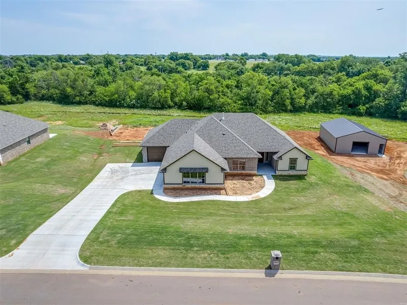 BUILDER IS OFFERING $10,000 IF YOU CLOSE BY 12/31/25! This beautifully designed home offers spacious living in peaceful surroundings with mature trees. Inside, you’ll find modern finishes including tall ceilings, crown molding, and wood look tile. The primary suite features a spa-inspired bathroom with a soaking tub, dual vanities and a walk-in shower. The junior suite also boasts its own private full bathroom, providing a perfect retreat for long term guests or family members. The kitchen is a standout, complete with custom floor-to-ceiling cabinetry, high-end gas appliances, quartz counter tops and a large pantry. The split 4-car garage offers drive through access in the stand alone 4th bay that is 28ft in length. Let's not forget the 30x40 shop building for convenient storage of additional equipment or collectables. Whether you're relaxing indoors or enjoying the outdoor space, this home is ideal for those seeking both comfort and functionality in a quiet, serene location.