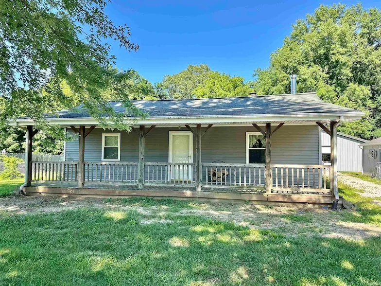Charming 2-Bedroom Home with Acreage & Workshop on Evansville's Westside! Welcome to 10135 Fischer Rd, where curb appeal meets cozy country living. This inviting 2-bedroom, 1-bath home sits on 2.5 acres and boasts a charming 8x36 covered front porch, perfect for relaxing and enjoying the peaceful surroundings. Inside, the open-concept kitchen and family room create an ideal space for entertaining. The kitchen comes fully equipped with a refrigerator, gas range/oven, and dishwasher. The family room offers a cozy atmosphere with a free-standing fireplace. Outside, you'll find a spacious 30x36 pole barn-style garage an ideal man cave, She Shed, workshop, or storage space complete with an attached covered carport/patio for versatile use. This property provides the perfect balance of comfort and outdoor space, all located in the desirable Westside of Evansville. German township water.