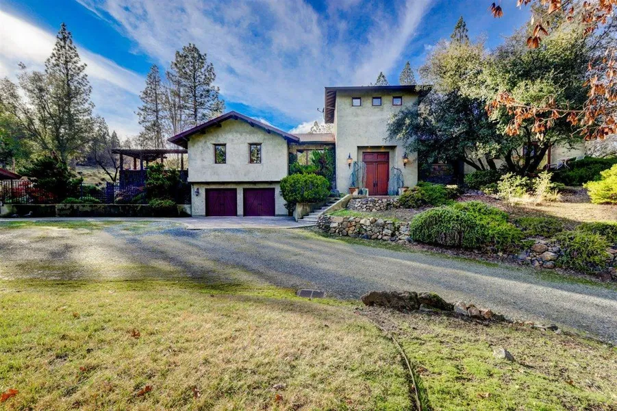 Magnificent Tuscan style home on 5.19 manicured acres just minutes West of Historic downtown Nevada City! Dramatic 26' formal entry with a spectacular chandelier & wall space for art invites you into this one-story quality home with radiant heat, concrete floors and 2X6 construction. The elegant great room features a true gourmet kitchen with Italian limestone and serpentine inlay back drop, 9' center island and custom cherry cabinets. The Rumfort wood burning fireplace in the living room is flanked by two French doors leading out to the fantastic fenced in-ground swimming pool & complimented by a full outdoor kitchen! The primary suite has a delightful sitting room overlooking the pool and the limestone bathroom features rain shower, plus a second outdoor shower, double sinks and soaking tub. Attached oversized two car garage, plus detached six car (36X40) and insulated garage with 4 roll up doors, plus a charming 486 sf guest quarters above with the same attention to detail as the main home, including bamboo floors! The exquisite land is completely brushed and manicured, and the high producing well is an added bonus! The Owners thought of every detail with metal & copper roof, recessed and low voltage lights with alabaster sconces! This home is a show stopper!